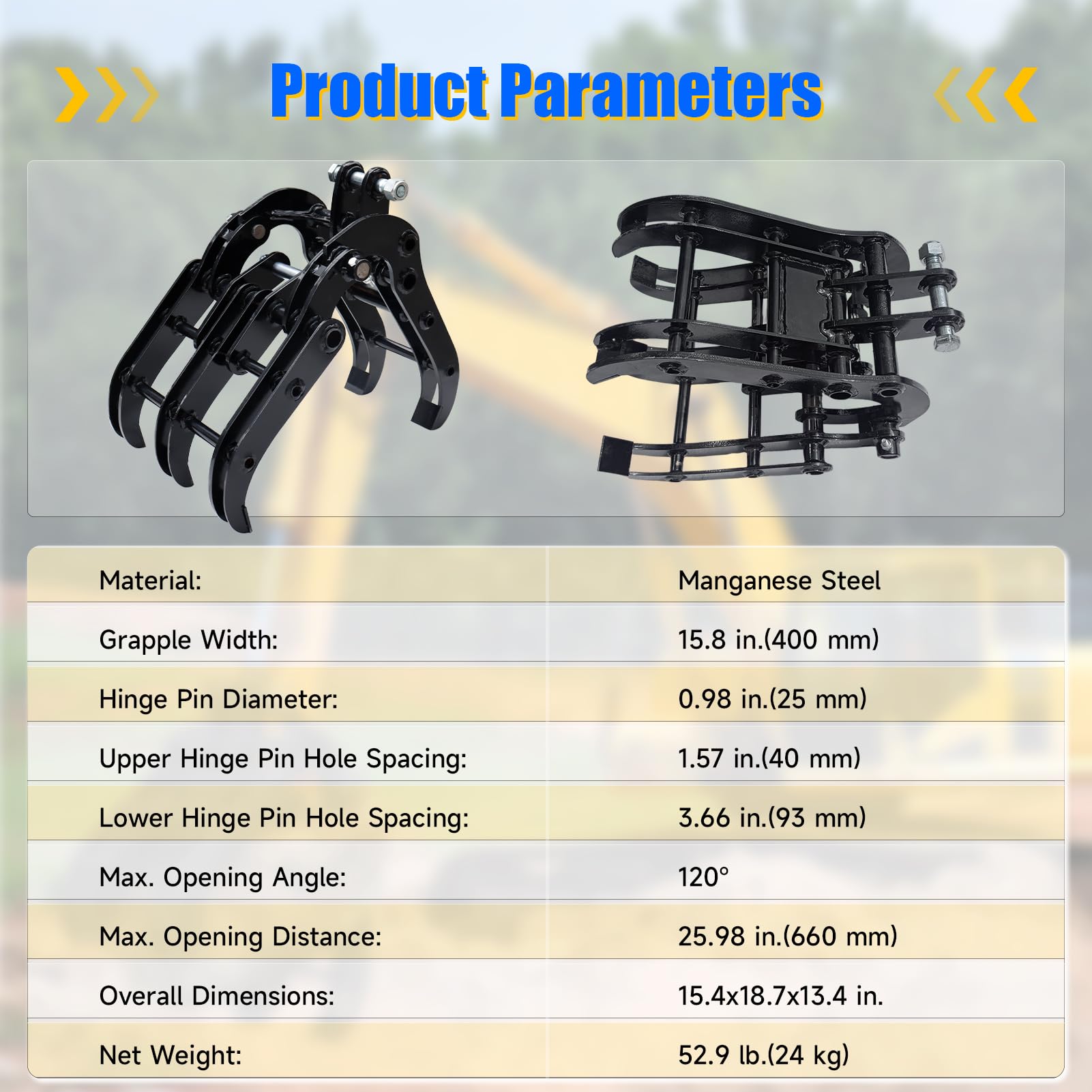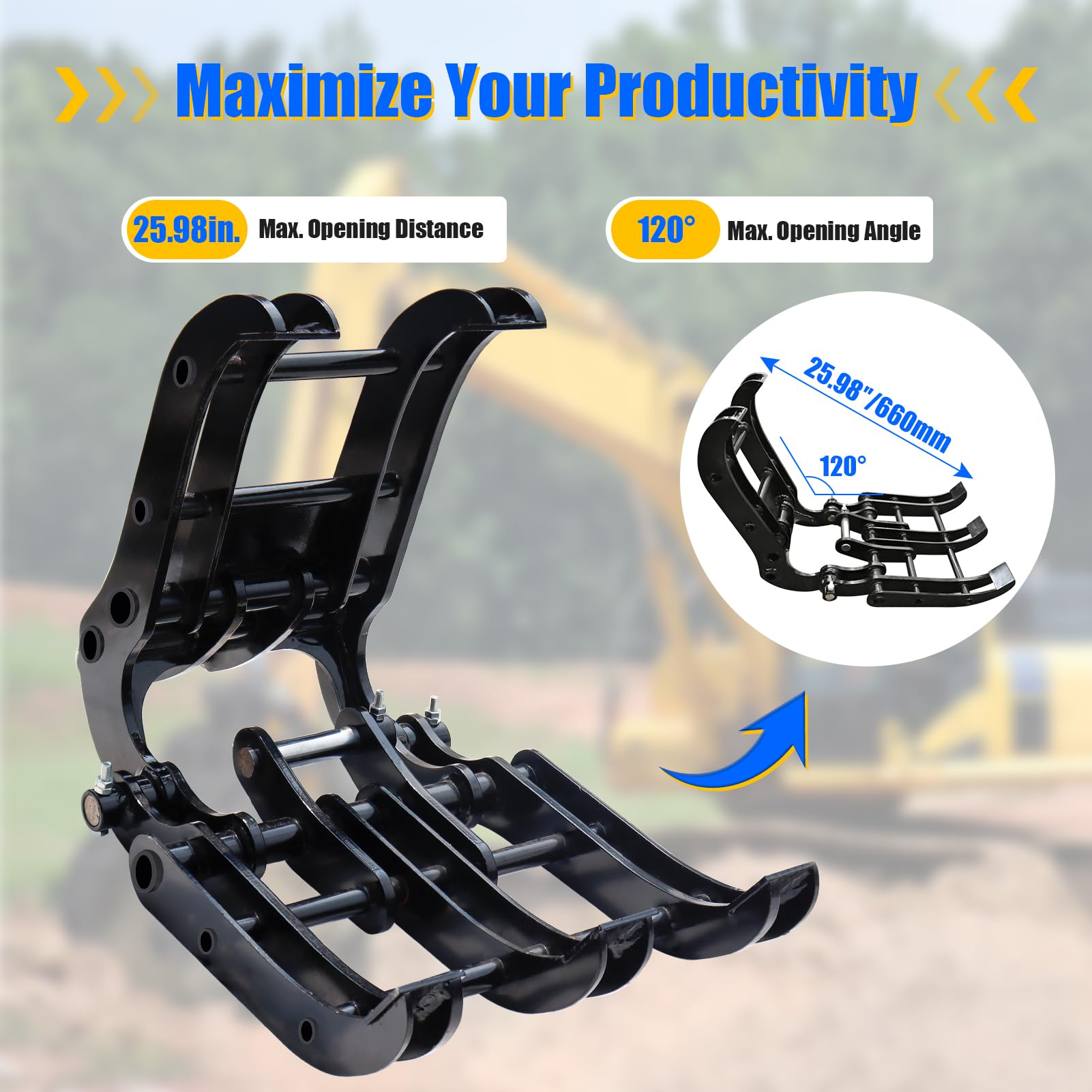 - Powerful Clamping Force: Mini excavator wood grabber are ideal for moving rocks, grabbing wood, and clearing weed piles, dirt piles, and branches. Its opening angle is 120 degrees, opening distance is 25.6 inches