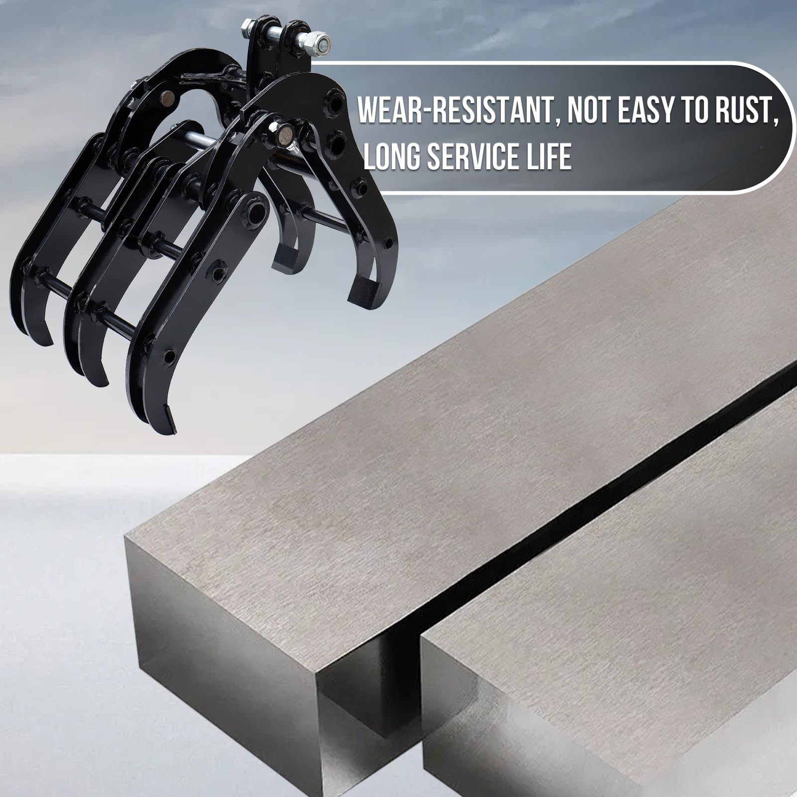 - Robust Raw Materials: Mini excavator grabber attachments is made of manganese steel, sturdy and durable, powder coated for rust and corrosion resistance, not easy to rust even when working in a humid environment, long service life