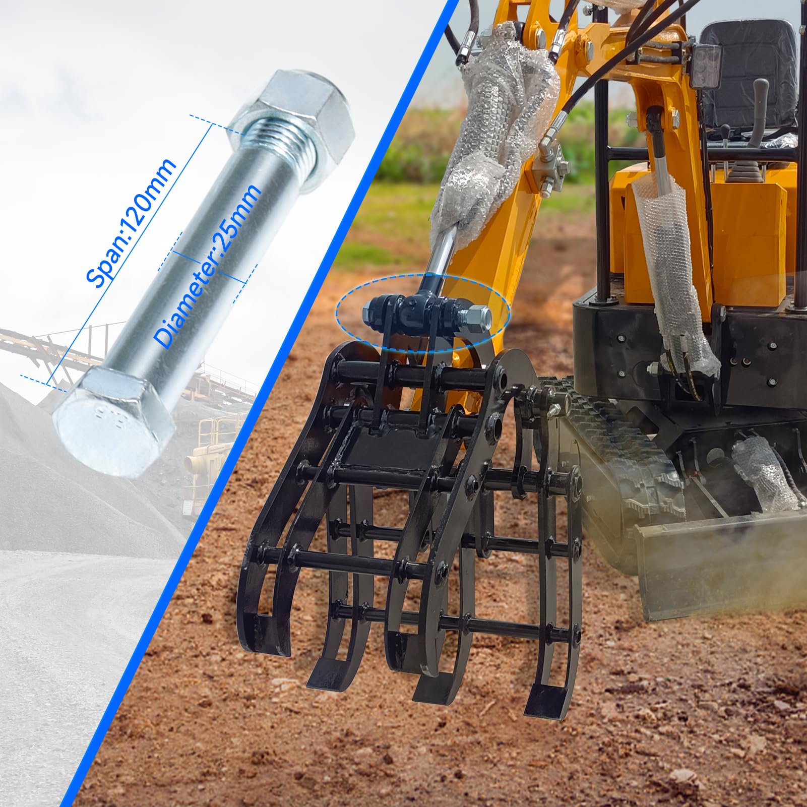 - Quick Installation: Grabber excavator attachment with 2* pins and 2* tightening nuts, complete accessories, saving replacement time, can realize quick installation, greatly improving the work efficiency of the excavator