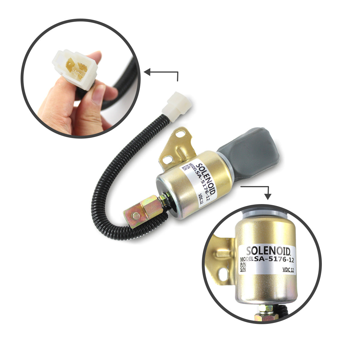 Fuel Shutoff Solenoid SA-5176-12 1756ES-12SUC5B1S5 for Kubota Engine D722 D902 Z482